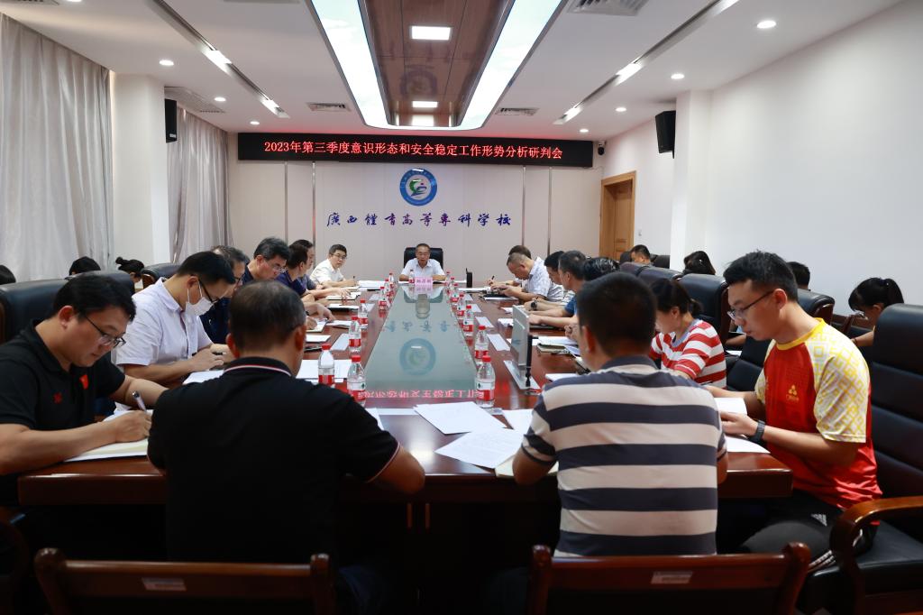 为精准把握爱体育(中国)意识形态和安全稳定工作形势,9月20日,爱体育电子官方网站党委召开2023年第三季度意识形态和安全稳定工作形势分析研判会。会议以党委扩大会的形式召开,爱体育(中国)党委书记杨昌鹏主持会议并作讲话,校长韦建勋、党委副书记李爱民、副校长邱团、副校长覃世东、纪委书记罗黎造,各部门、学院、中心主要负责人参加会议。