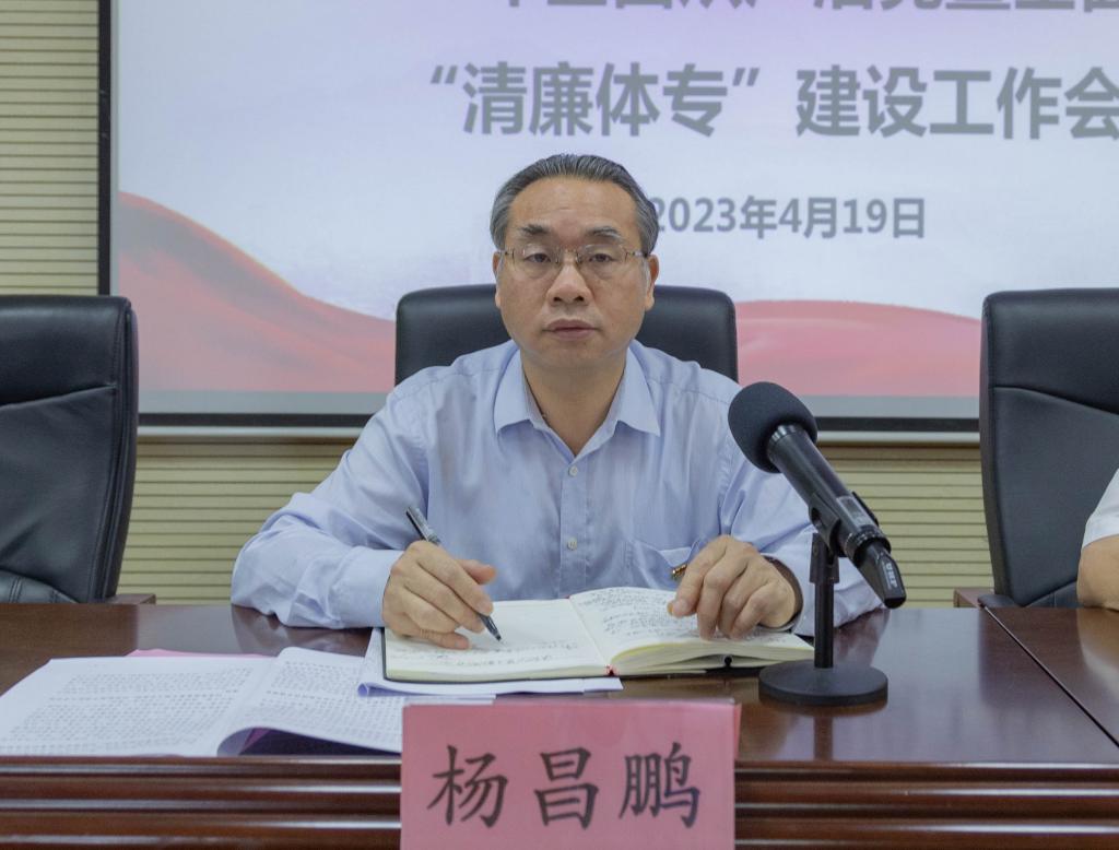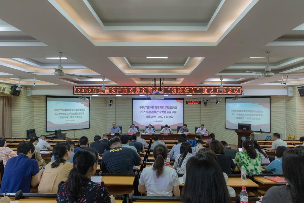 4月19日下午,爱体育(中国)召开2023年全面从严治党暨全面深化“清廉体专”建设工作会议。爱体育(中国)党委书记杨昌鹏出席会议并讲话,会议由胡英清校长主持。爱体育(中国)领导班子其他成员,机关各部门、各学院班子成员,爱体育(中国)纪委委员,各党总支部委员和党支部委员,“清廉体专”领导小组全体成员参加会议。