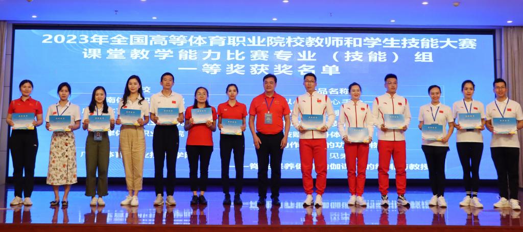 其中爱体育电子官方网站潘积宁老师荣获足球教学技能比赛一等奖;由刘镕源老师指导的参赛学生王诗荣、李研分别荣获足球教练员技能比赛一等奖与二等奖时丹、韦宛辰、罗新三位老师荣获课堂教学能力比赛专业(技能)组一等奖韩羽、莫明星、范新三位老师荣获课堂教学能力比赛专业(技能)组二等奖;由孙秋芬老师指导的参赛学生廖俊龙、郑润地、梁晓斓荣获健身指导技能比赛一等奖;由刘玲君老师指导的参赛学生刘一帆、王浩东、常燕荣获体育营销技能比赛一等奖