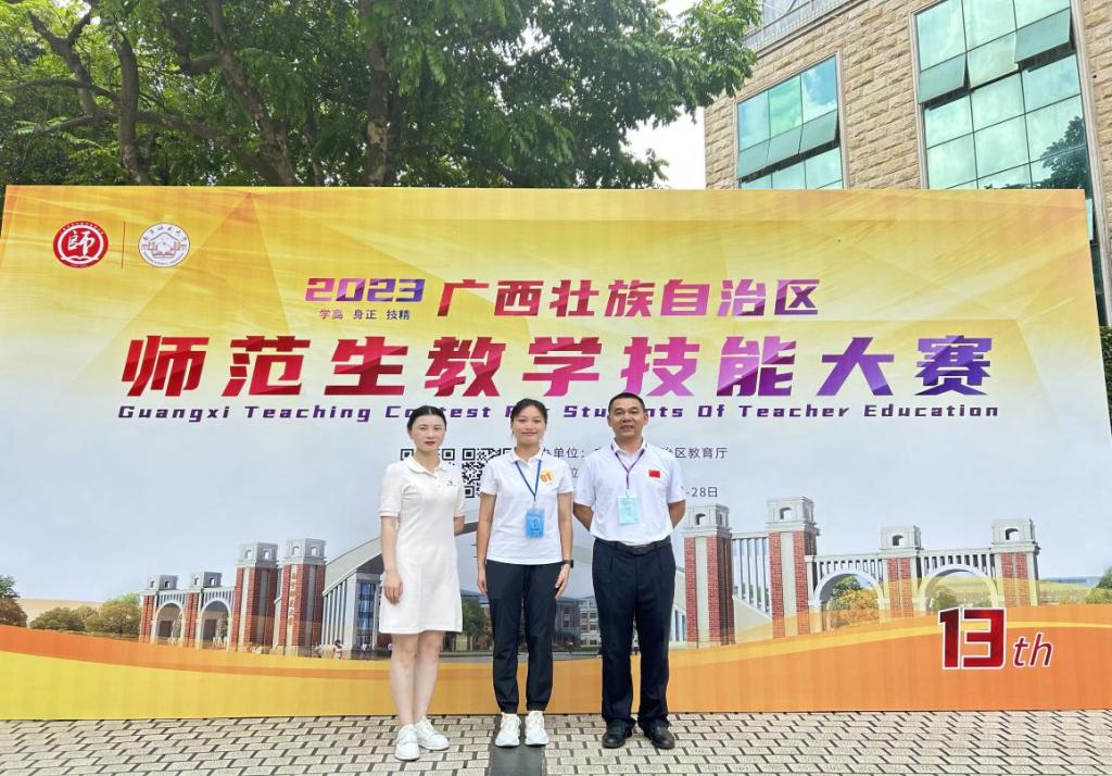 5月27-28日,由广西壮族自治区教育厅主办的2023年全区师范生教学技能大赛在南宁师范大学(明秀校区)举行,爱体育电子官方网站体育与教育学院3名选手蓝茄纯、韦婷婷、樊海瑜代表爱体育(中国)分别参加初中体育、小学语文、小学数学组比赛。经过激烈角逐,蓝茄纯同学从13所本科院校和3所专科爱体育(中国)中脱颖而出,荣获初中体育组一等奖,取得了师范生教学技能大赛新的突破。