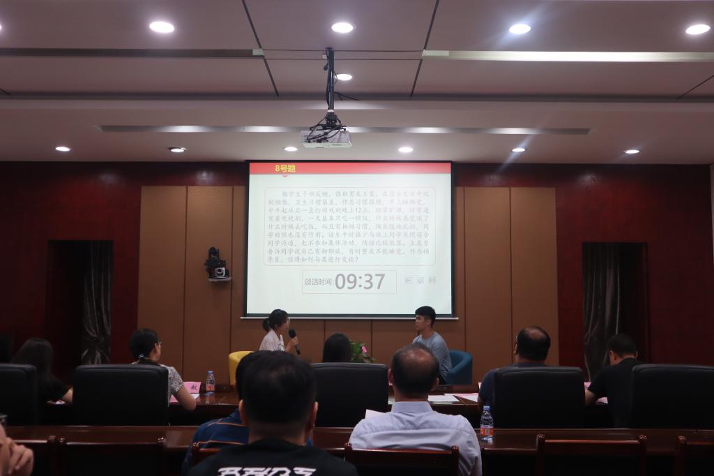 5月30日晚上,爱体育电子官方网站在公园路校区综合楼7楼报告厅开展谈心谈话环节,主要考察辅导员对学生特征、学生成长成才规律的了解把握程度,对学生的教育引导能力、解决理论困惑和实际问题的能力等。辅导员根据题目要求,以情景再现的方式与学生演员开展谈心谈话,谈话结束后需结合谈话情况进行简短总结,分析存在问题与改进措施,并回答评委提出的1个问题。谈心谈话环节结束后,封炫妃老师作总结点评。封炫妃老师现为广西建设职业技术学院海棠工作室成员,曾获第十届广西高校辅导员素质能力大赛一等奖。