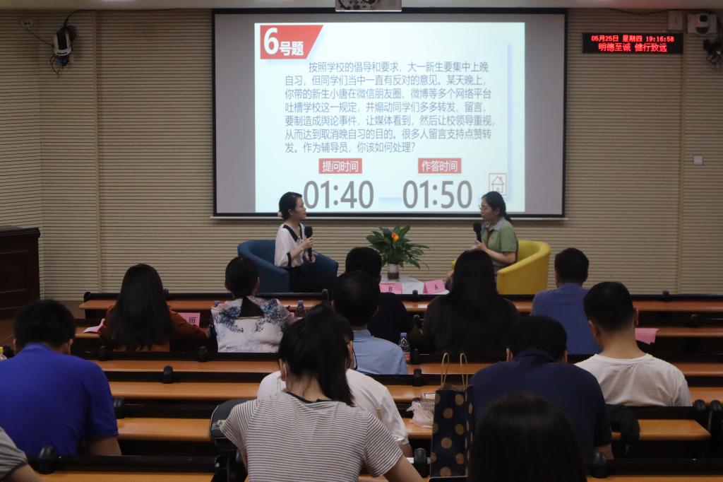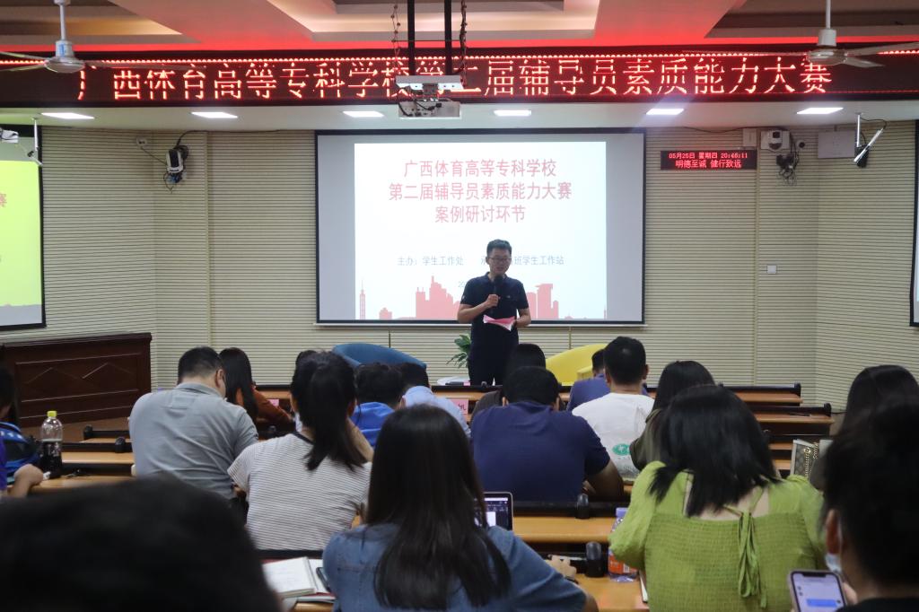 5月25日晚上,爱体育电子官方网站在公园路校区综合楼402教室开展案例研讨环节,主要考察辅导员综合运用理论分析问题、研判问题、解决问题、应急处突等能力。8位辅导员在赛前抽签分为四组,由两位辅导员围绕案例共同辨析原因、研讨对策、总结规律,充分展现了爱体育电子官方网站辅导员在理论运用和问题处理方面的实力与能力。案例研讨环节结束后,冯光帆老师作总结点评。冯光帆老师现为广西建设职业技术学院土木工程学院团总支书记、海棠工作室主要成员、扬帆工作室主持人,曾获第十届广西高校辅导员素质能力大赛一等奖、第八届广西高校辅导员素质能力大赛二等奖。