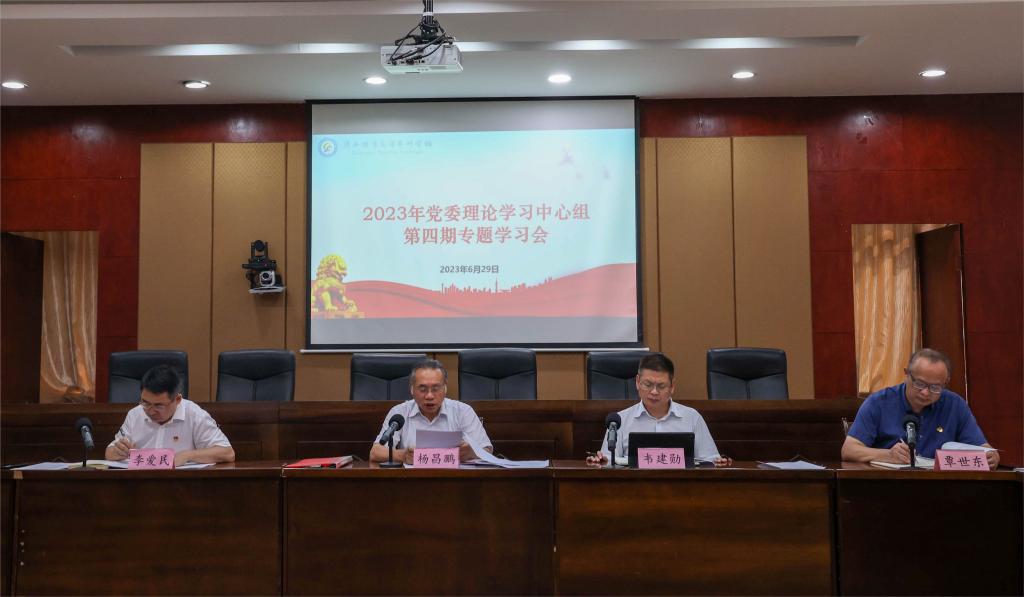 6月29日下午,爱体育电子官方网站在综合楼7楼报告厅召开2023年党委理论学习中心组第四期专题学习会。爱体育(中国)领导,各部门、各学院(部)正职,处级干部,马院正副职参加会议。会议由校党委书记杨昌鹏主持。