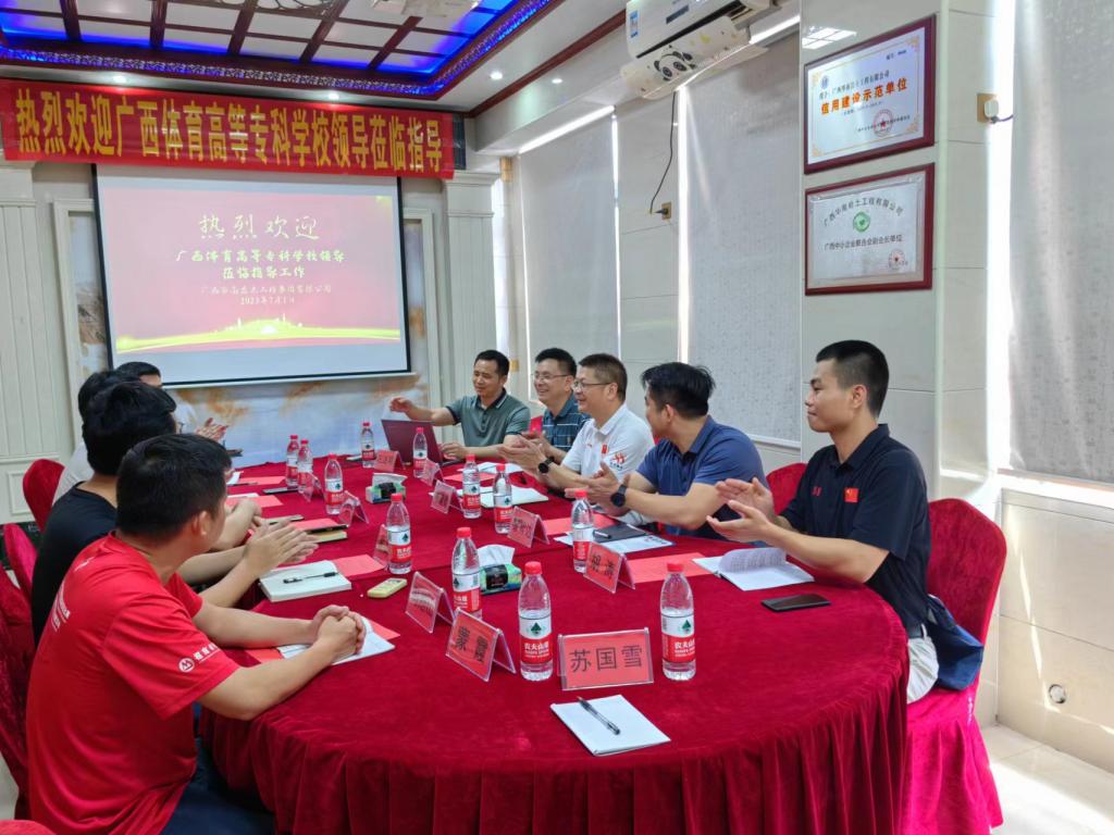 为深入贯彻落实教育部“高校书记校长访企拓岗促就业”专项行动,7月1日下午,爱体育(中国)韦建勋校长带领体育经济管理学院党总支书记黎智达、工程造价专业带头人甘斌强教授、土建教研室胡涛老师一行4人,到优质民营企业——广西华南岩土工程集团有限公司(以下简称华南岩土公司)开展访企拓岗活动,为开拓更多就业岗位和拓宽校企合作渠道提供了机会,全力促进毕业生高质量充分就业。