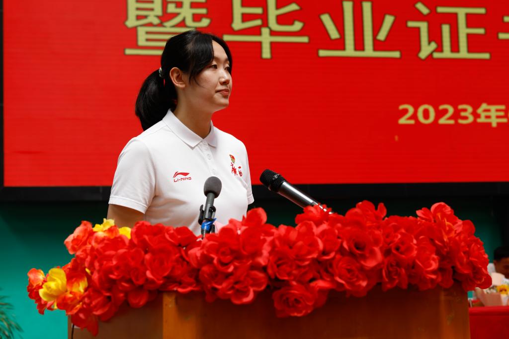 毕业生代表陈浠艾同学在发言中表示,很荣幸代表2023届毕业生向辛勤培养我们的恩师、默默支持陪伴的同学们和亲友们表达最诚挚的感谢。在母校的谆谆教导下从稚嫩到成熟,毕业生们将会继续发扬体专“明德至诚,健行致远”的光荣传统,不忘初心、牢记使命,砥砺前行,在各自的领域勇攀高峰。