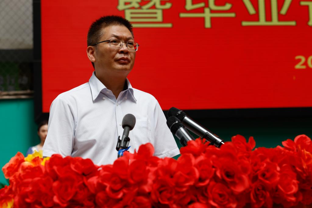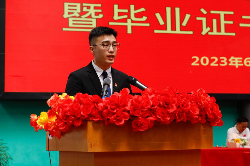 教师代表牛冠男老师代表全体教师向毕业生表示衷心的祝贺,祝贺每位毕业生完成了各自的学业,每一位同学努力和付出都让老师们感到骄傲和自豪,每一次成长、每一回进步都将是人生中的勋章。现在同学们站在新的起点,不用彷徨,勇敢向前,保持初心,让所思所想能够在实践中发光发热。