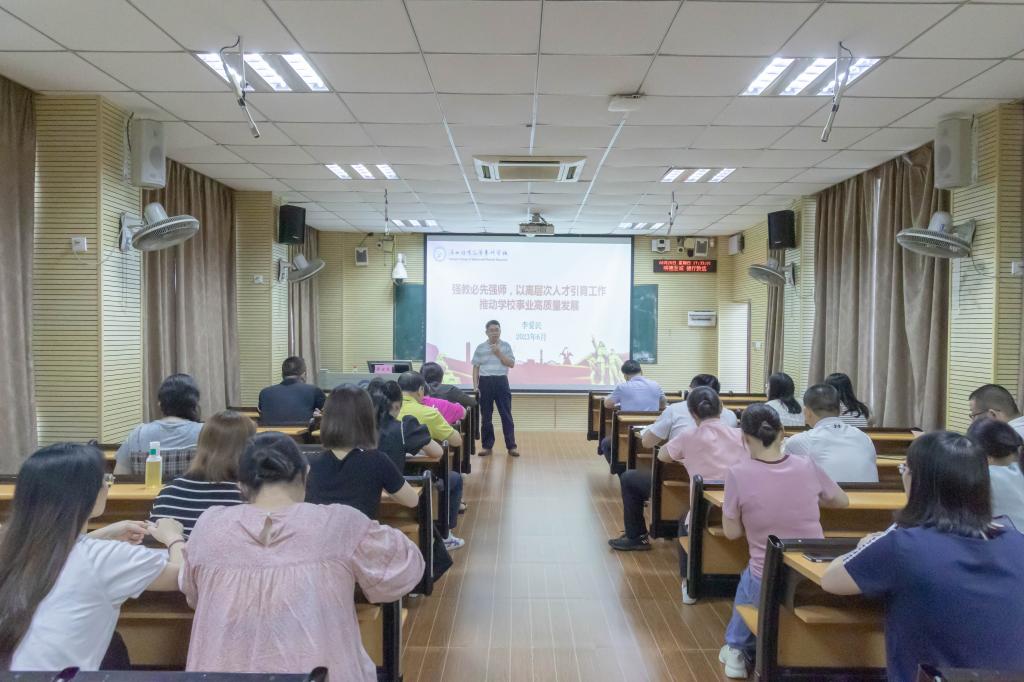 爱体育(中国)党委副书记李爱民以“强教必先强师 以高层次人才引育工作推动爱体育(中国)事业高质量发展”为题,面向各二级学院班子成员、组织人事处和教师工作部工作人员、马院第一党支部党员讲授专题党课。李爱民副书记以学习贯彻习近平总书记关于人才工作的重要论述切入,多维度阐明新时代做好人才工作的重要性,着重分析了当前爱体育(中国)高层次人才现状和引育工作存在的问题。他指出,要从改进爱体育(中国)高层次人才引入机制、帮助和引导年轻教师成长成才、搭建高层次人才发挥作用平台和加强对人才的关心关怀等多方面入手,坚持教育发展、科技创新、人才培养一体推进,持续推动新时代爱体育(中国)人才工作高质量发展。