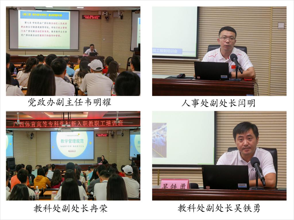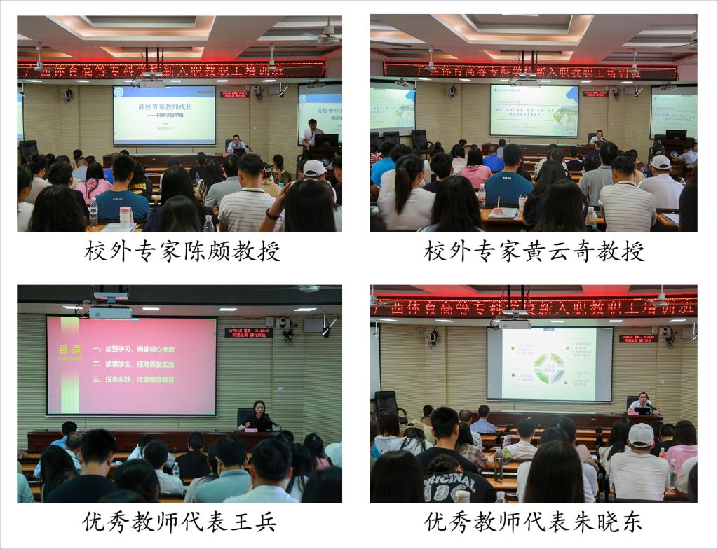 校外专家黄云奇、陈颇,党政办副主任韦明耀,人事处副处长闫明,教科处副处长吴铁勇、冉荣,分别就“三教”改革、高校青年教师成长、依法治校、人事管理、项目申报、教学常规等作了专题讲座,还邀请了优秀教师代表作相关工作经验交流。