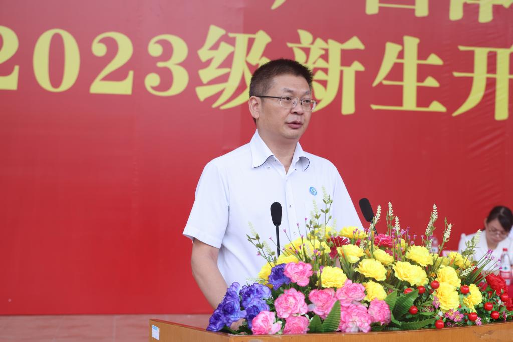 爱体育(中国)党委书记杨昌鹏、校长韦建勋、副校长覃世东及各部门、学院、中心负责同志出席开学典礼。典礼由李爱民副书记主持。