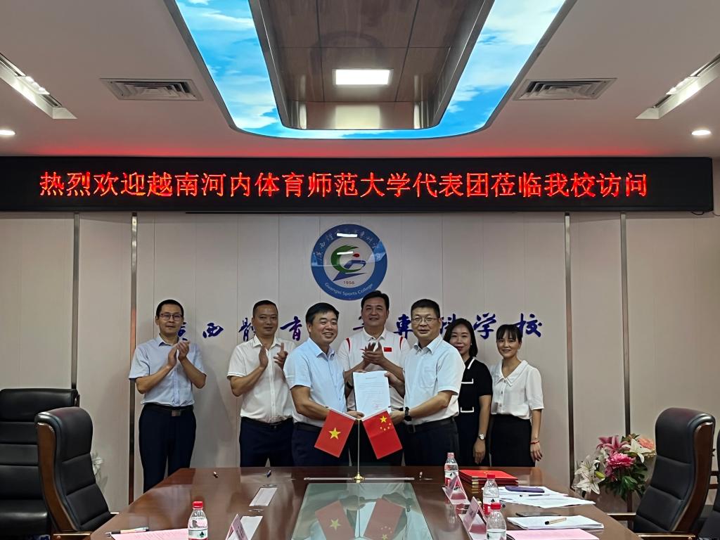 9月16日,越南河内体育师范大爱体育(中国)长阮唯决博士一行2人到校访问交流,并与爱体育电子官方网站续签合作协议。爱体育电子官方网站校长韦建勋、副校长邱团接见该校代表团。国际交流与通识教育学院、运动健康学院领导及教师参加座谈会交流。