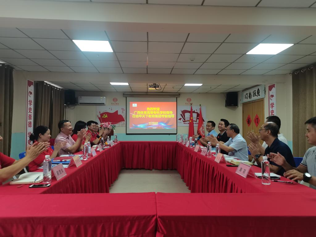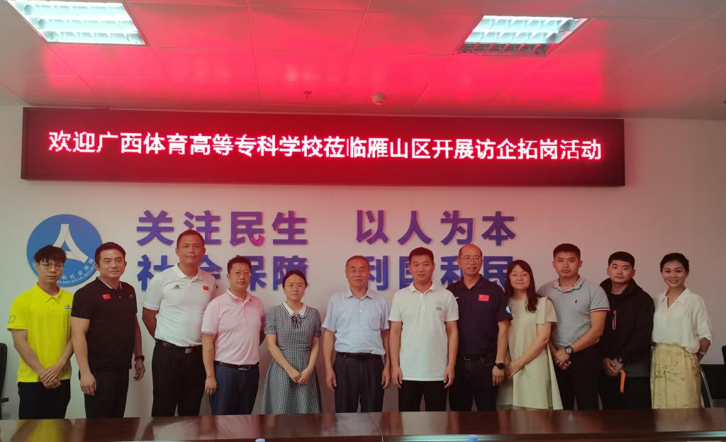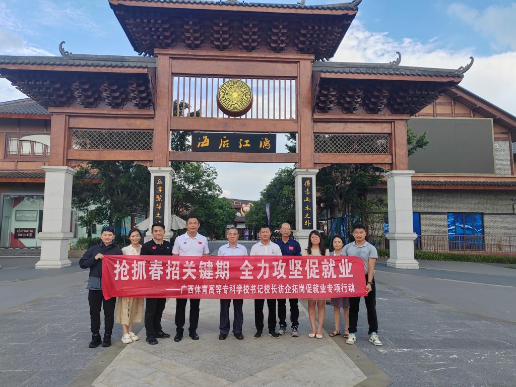 为积极促进爱体育电子官方网站2023届毕业生高质量充分就业,6月9日,爱体育(中国)党委杨昌鹏书记带队前往广西桂林甲天下教育科技有限公司,桂林市雁山区人社局、教育局及愚自乐园、融创乐园等用人单位开展访企拓岗促就业专项行动,招生就业处陈铭处长、体育与教育学院党总支覃琳书记、体育与教育学院韦军院长、体育经济管理学院党总支黎智达书记等同志陪同前往。