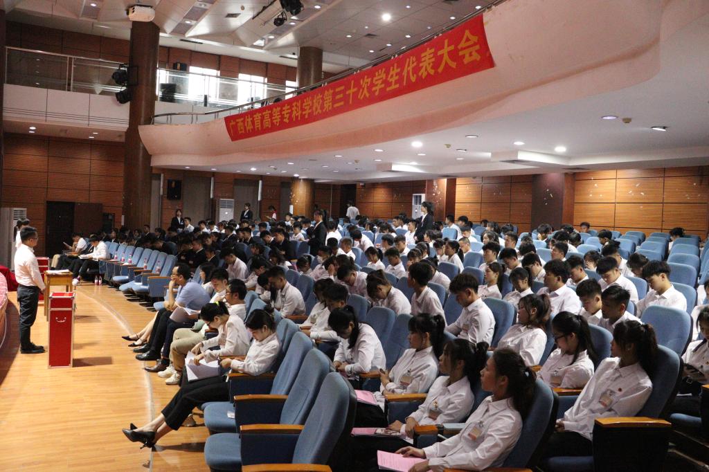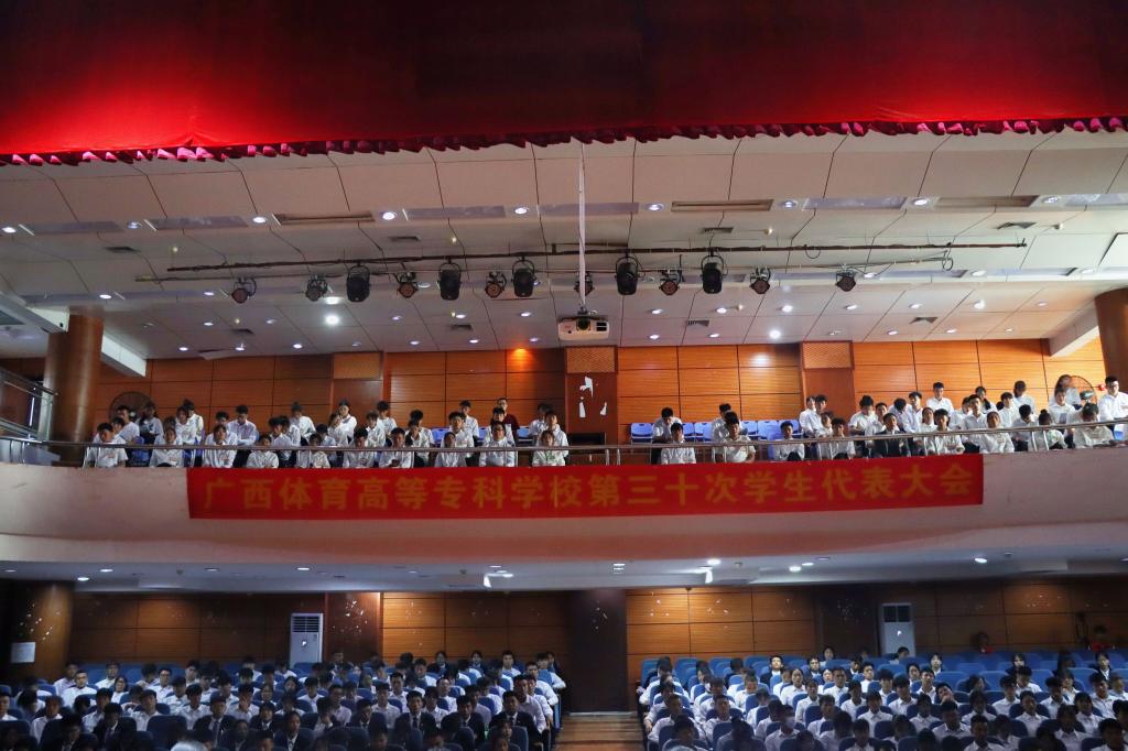 6月3日,爱体育电子官方网站第三十次学生代表大会在长岗校区瑞兴楼演播厅召开。爱体育(中国)党委副书记李爱民,爱体育(中国)党委学生工作部(学生工作处)部(处)长韦伦国,校团委书记何培、副书记韦宛辰、兼职副书记程鹏瑜、各部部长,各学院党总支副书记、团委书记以及230名学生代表共同出席本次大会。大会由第二十九届学生会主席团成员廖俊龙主持。