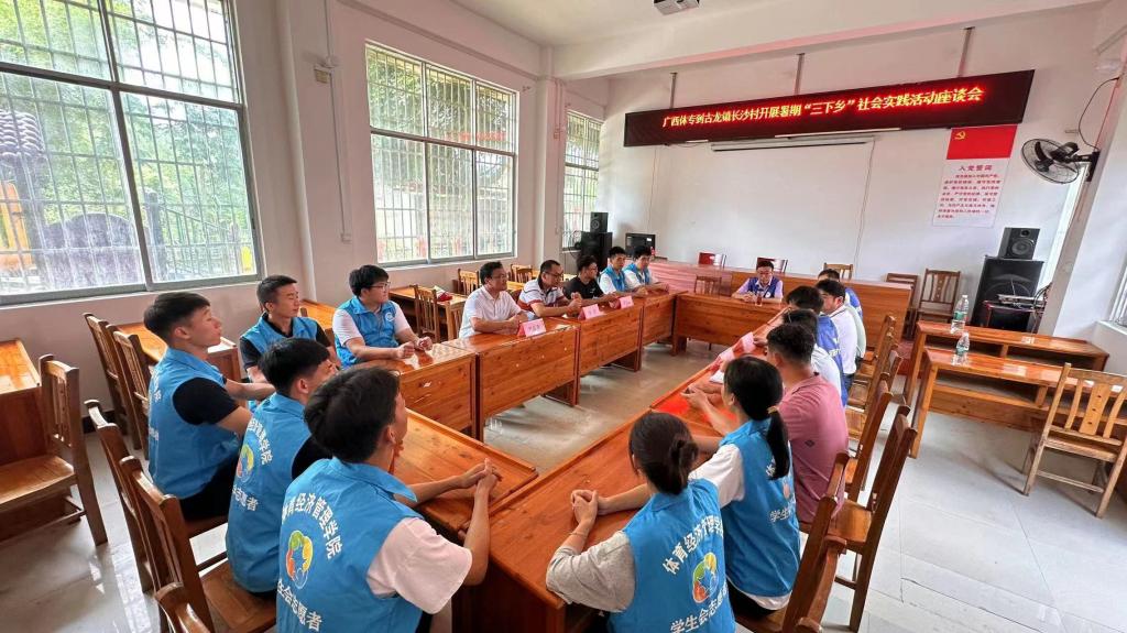 7月7日早上,驻村工作队以及村“两委”成员与志愿服务队的同学们在村委会议室召开座谈会。会上,长沙村驻村第一书记黄一飞对志愿者们的到来表示热烈的欢迎。随后黄一飞书记向同学们讲述脱贫攻坚精神,他说:“长沙村在古龙镇党委、政府的坚强领导下,驻村工作队和村“两委”成员团结带领勤劳勇敢的长沙村人民取得了全面脱贫的伟大胜利,目前正朝着乡村振兴的宏伟目标继续前进。”接着,爱体育电子官方网站体育经济管理学院团委书记方式老师讲解此次活动中义剪、研学活动以及村里面的情况。随后,长沙村党总支书记黄德湘详细讲述了村里近年来在脱贫攻坚和实施乡村振兴战略以来的产业发展情况。最后,村“两委”成员对志愿者们对村里卫生教育以及医疗方面的问题一一进行解答。