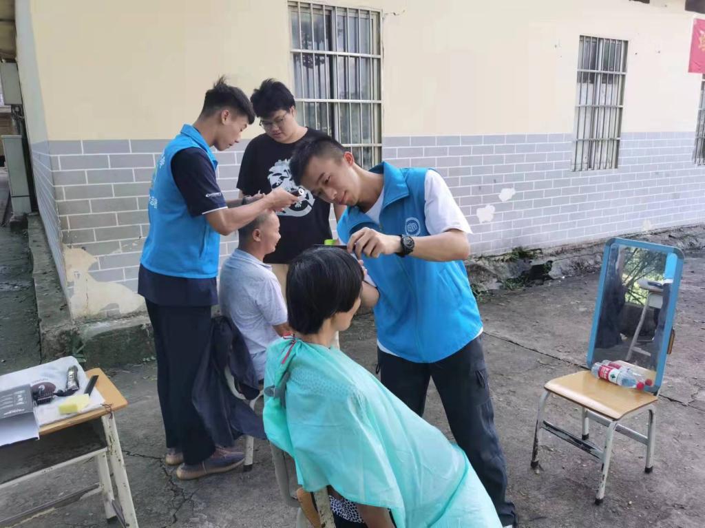 校外的活动现场,一部分志愿者们带好了理发工具为村里的老人们义务理发,前来理发的老人人数众多,志愿者们依旧耐心地为他们服务。此次义剪活动共为40多名村民提供了免费理发,公益理发虽然看起来微不足道,却实实在在地打动了村民的心,切实满足了村民的需求,使村民深切感受到了社会大家庭的温暖和关怀,感受到了当代青年脚踏实地办实事的为民精神。