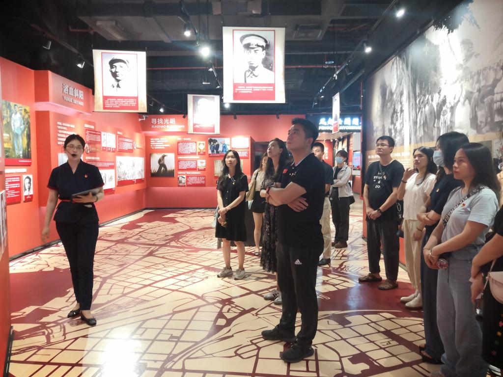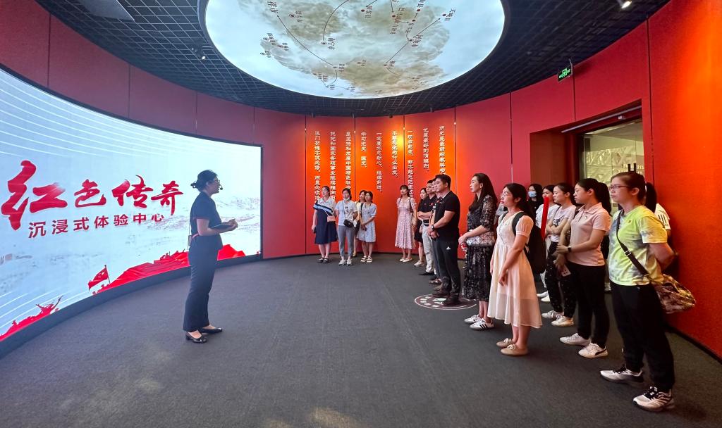 7月7日,体育经济管理学院党总支部组织学院全体教师党员赴广西新媒体中心《红色传奇》沉浸式体验中心开展“追寻红色记忆 赓续红色精神”主题党日活动。通过参观广西革命斗争史、体验沉浸式党课、集体宣誓、学习分享交流,以全新的沉浸式体验视角重温了广西红色革命的光辉历程。