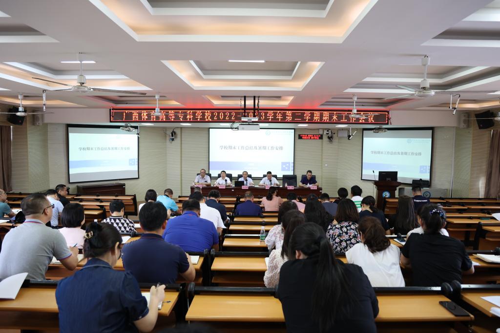 7月6日下午,爱体育电子官方网站召开2022-2023学年第二学期期末工作会议。爱体育(中国)党委书记杨昌鹏、校长韦建勋出席会议并讲话。爱体育(中国)其他领导班子成员,各部门、各学院(部)正副职、科级以上(主办干事)干部参加会议。会议由副书记李爱民主持。