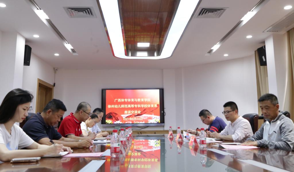 交流会上,韦军院长表示徐州幼儿师范高等专科爱体育(中国)在幼儿高等职业教育领域具有较高的地位和影响,近年来体育系坚持走特色发展新路,取得了优异的成绩,给了兄弟院系很好的启示。闻年富副主任表示,广西体育教育事业具有悠久的历史和光荣的传统,广西体专坚持规模和质量发展并举,体育教育专业始终保持在同类院校中的领先地位,特别是在课程建设、产教融合、服务地方方面亮点突出,令人印象深刻。双方围绕“十四五”发展规划编制思路与举措、人才培养、院系建设、课程思政、学生管理、训练竞赛和创新创业等内容进行了深入交流。双方表示均受益匪浅,希望今后能进一步加强合作与交流,共同为我国的体育教育事业添能助力,为加快推进体育强国建设做出体育人应有的贡献。
