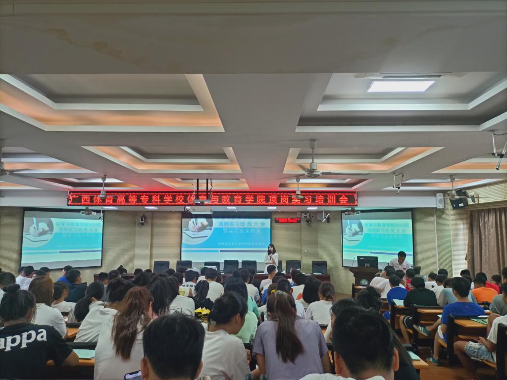 为使学生明确顶岗实习意义,引导学生做好顶岗实习工作,安全顺利的完成顶岗实习任务。近日,我院分别在爱体育(中国)公园路校区和长岗校区举行2019级顶岗实习动员暨安全教育大会,对即将参加顶岗实习的学生进行实习工作的动员和部署,并开展实习安全教育。学院2019级体育教育(含定向)、运动训练、社会体育、民族传统体育专业全体学生参加了会议。