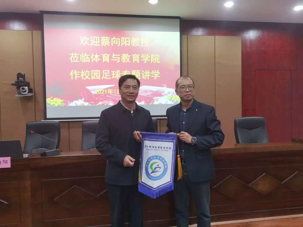韦军院长向蔡向阳教授赠送校足球队队旗