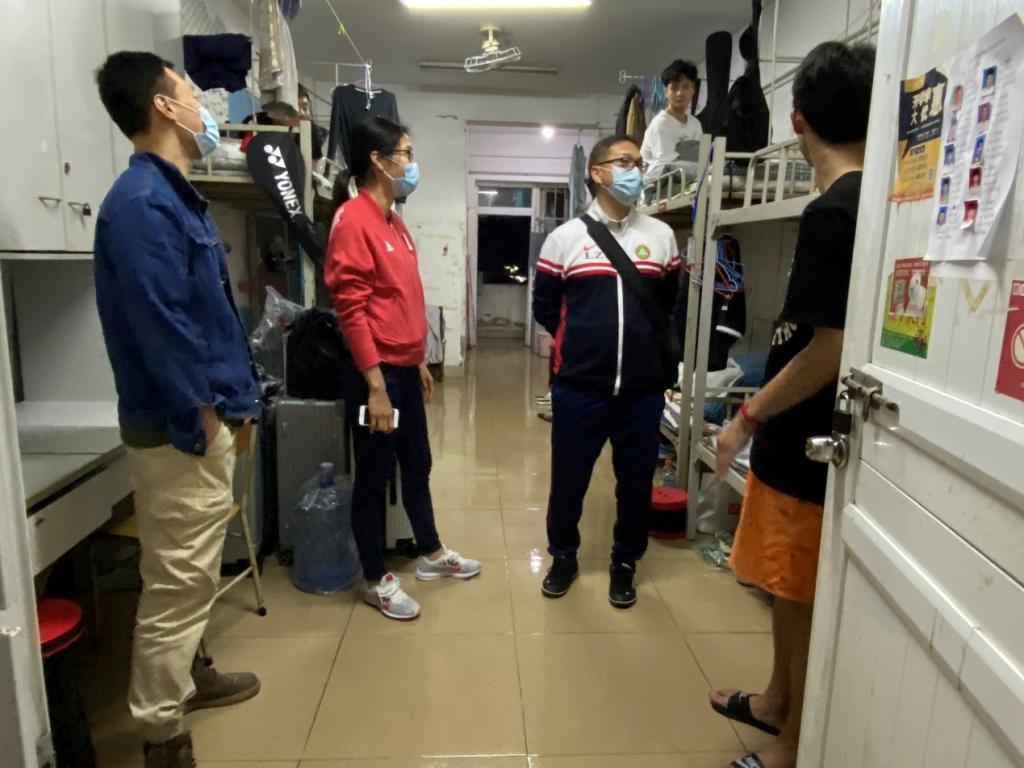 学院党总支书记覃琳在公园路校区走访学生宿舍,了解常态化疫情防控要求下学生返校情况,覃琳书记对同学们提出了殷切期望,希望同学们在新的学期里珍惜青春年华,坚定理想信念,勤于学习,善于学习,夯实专业基础,积蓄前进能量;同时也鼓励同学们注重锤炼品格意志,努力成长成才,展现出体教院学子昂扬奋进的精神状态。
