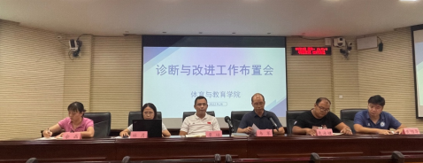 为贯彻落实内部质量体系诊断与改进工作,迎接自治区教育厅专家的入校复核工作,体育与教育学院于2022年9月26日下午在综合楼402会议室召开诊改工作布置会。学院全体班子成员,全体教职工参加工作布置会,会议由院长韦军主持。