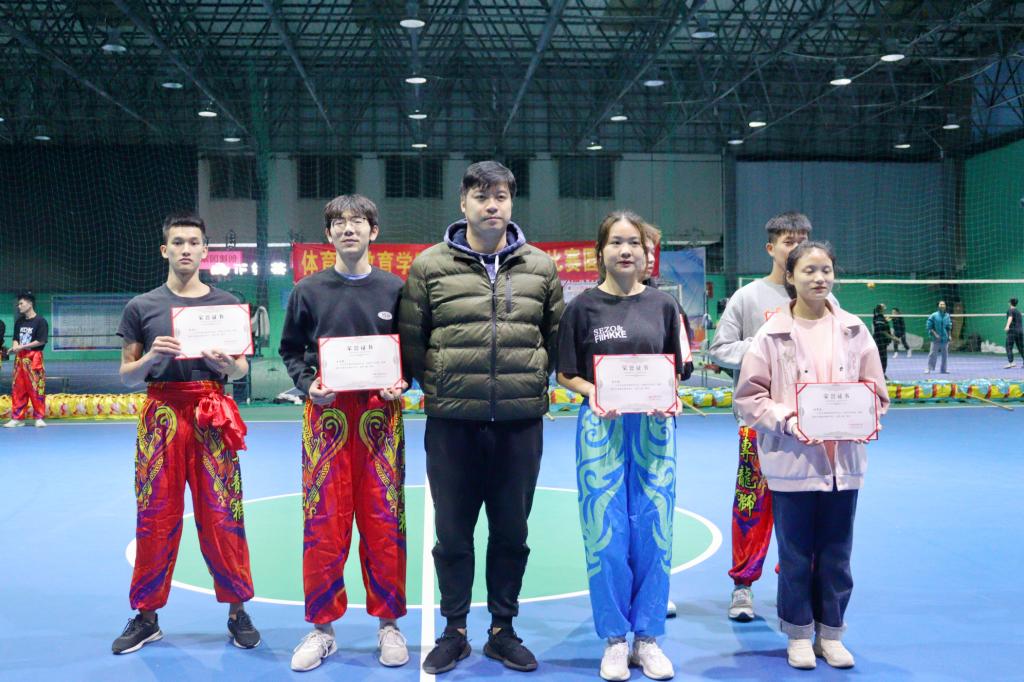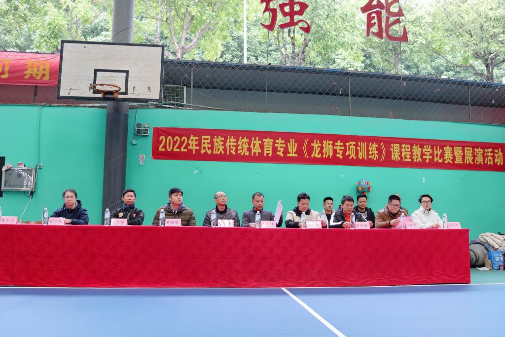 2022年12月4日下午15点,体育与教育学院2021级民族传统体育专业《龙狮专项训练》课程教学比赛暨展演活动,在公园路校区综合训练馆3号篮球场隆重举行,体育与教育学院院长韦军教授和副院长黄绍华老师、体育健康产业学院副院长张忠教授、21级辅导员韦竺含及民族传统体育教研室全体教师莅临本次教学比赛。