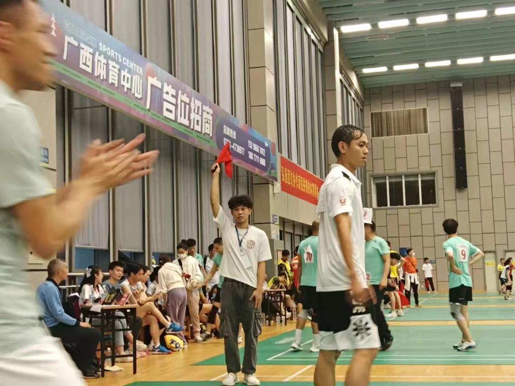 2023年全区高校教职工气排球比赛暨全国教科文卫体系统职工气排球比赛广西区选拔赛于5月12日-14日在广西体育中心综合训练馆隆重举行,本次大赛是全区规模最大的比赛之一。比赛前期,我院杨湘老师带领全体排球专选班学生积极参加组委会组织的赛前培训、技术大会,熟记裁判规则和标准,严格按照各项流程执裁,做到公平、公正、公开。比赛中,在杨湘老师的指导下,专选班同学轮流上阵,展现出勤恳务实的态度、优异的专业能力、一丝不苟的工作精神。
