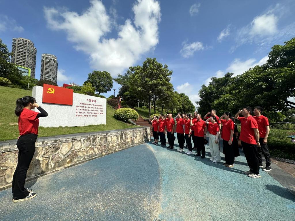 在入党宣誓碑前,全体党员重温了入党誓词,以庄严神圣的方式表达了对党的无限热爱和绝对忠诚。重温宣誓结束后,党员们学习了习近平总书记视察广西重要讲话和重要指示精神,现场体悟习近平新时代中国特色社会主义思想的思想伟力、真理伟力、实践伟力。