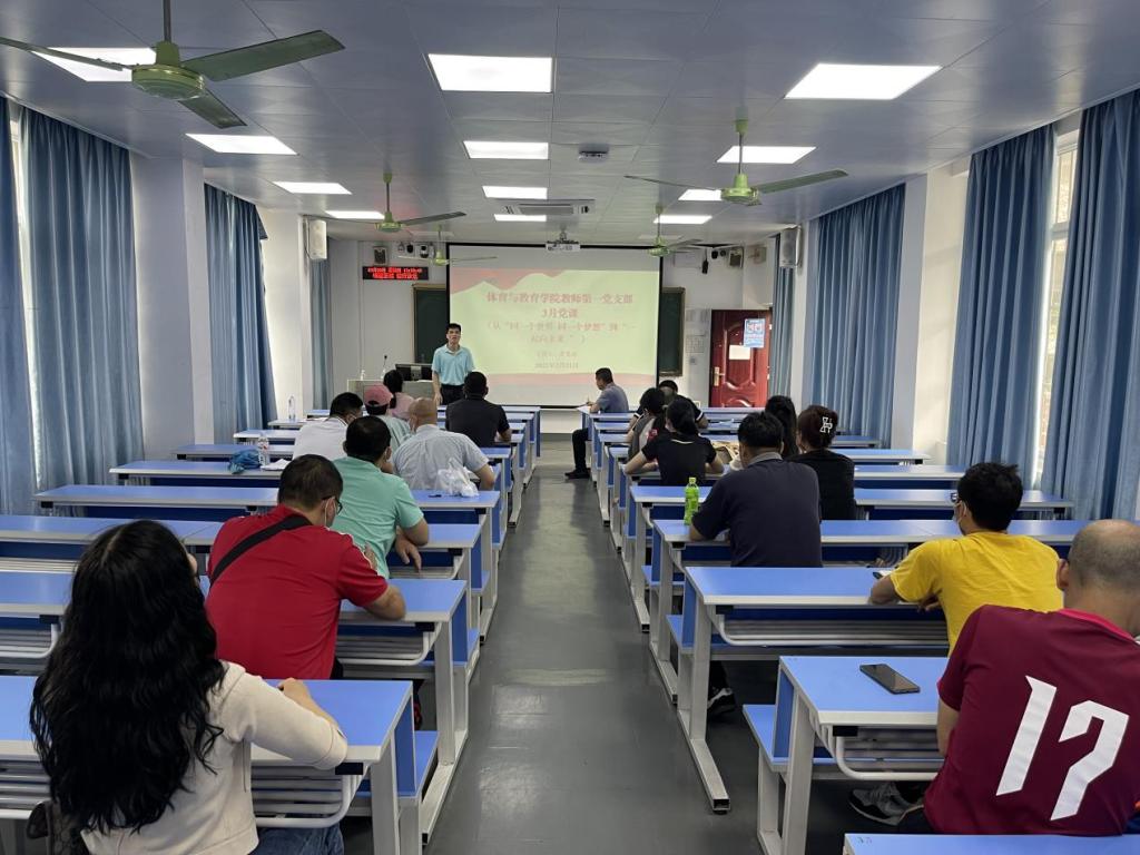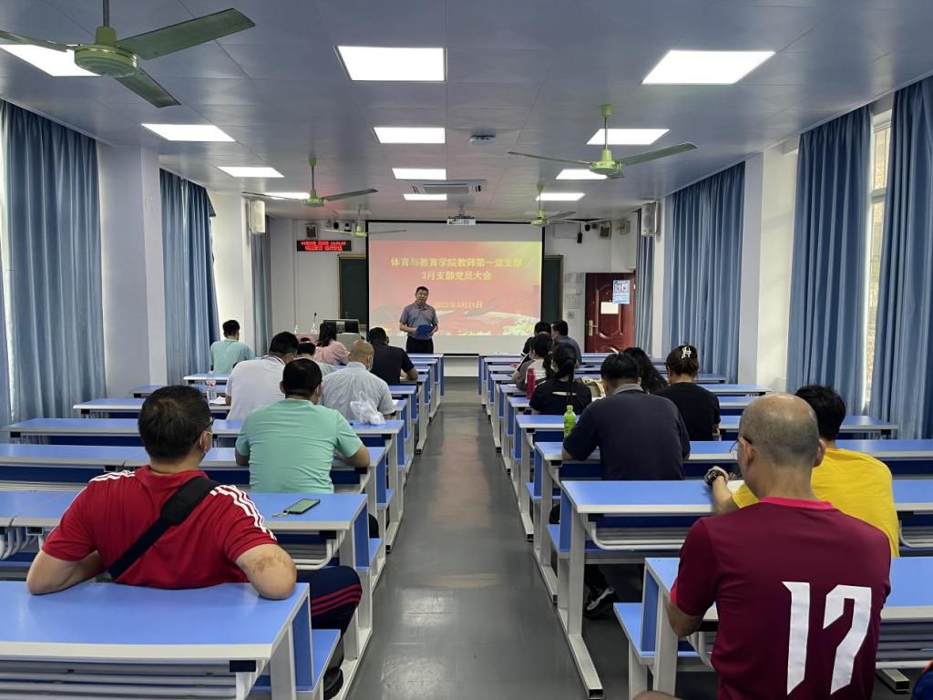 3月21日,体育与教育学院教师第一党支部召开党员大会暨“从‘同一个世界,同一个梦想’到‘一起向未来’” 专题党课,会议由支部书记罗建达主持,爱体育(中国)副校长邱团及支部全体党员参加。