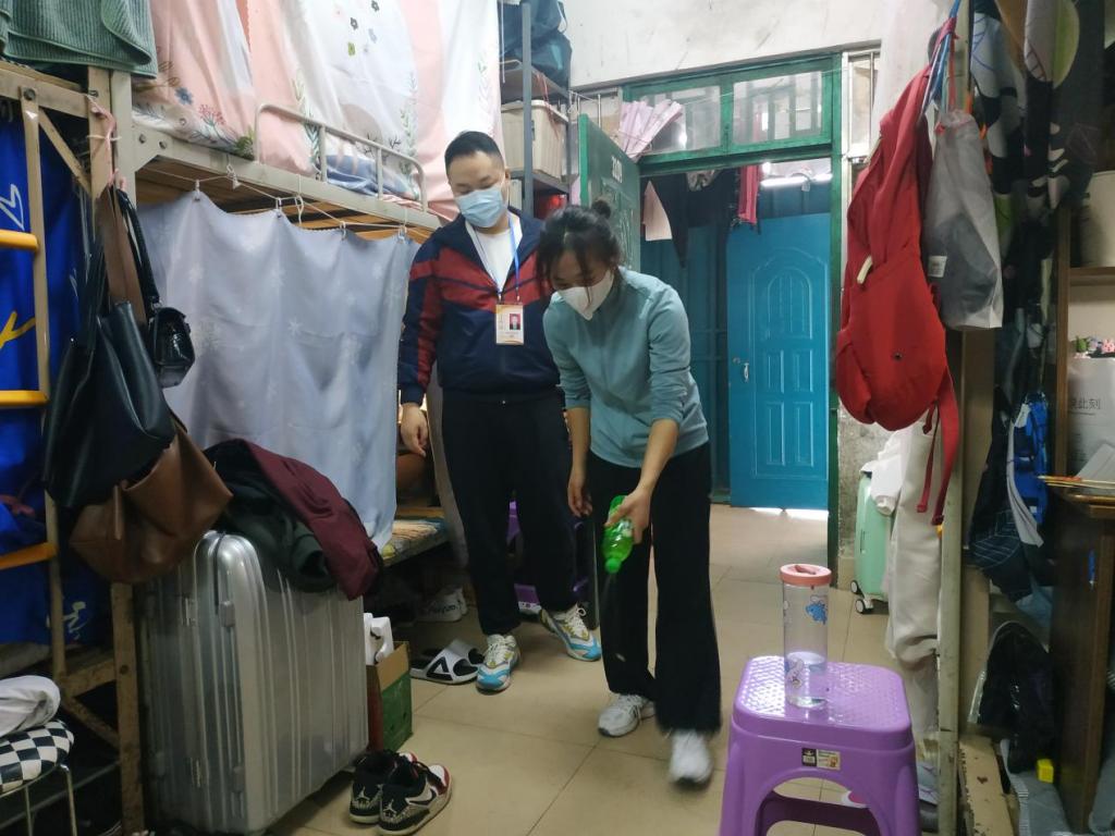 3月25日中午12时许,公园路校区和长岗校区在学生宿舍同步开展“爱国卫生运动”宿舍清洁,学院全体辅导员与学生们一同参与。辅导员统一向学生发放洁厕剂,宿舍成员明确分工,将宿舍的地面、桌面、卫生间进行清洁,整理书桌、箱柜,对宿舍里的每一个地方都进行了仔细的打扫和消杀;本次活动不仅仅是整理宿舍内务卫生,同时对学生宿舍是否有乱拉电线以及违规使用大功率电器的现象进行了严格检查,目的是让学生们做到安全用水用电。