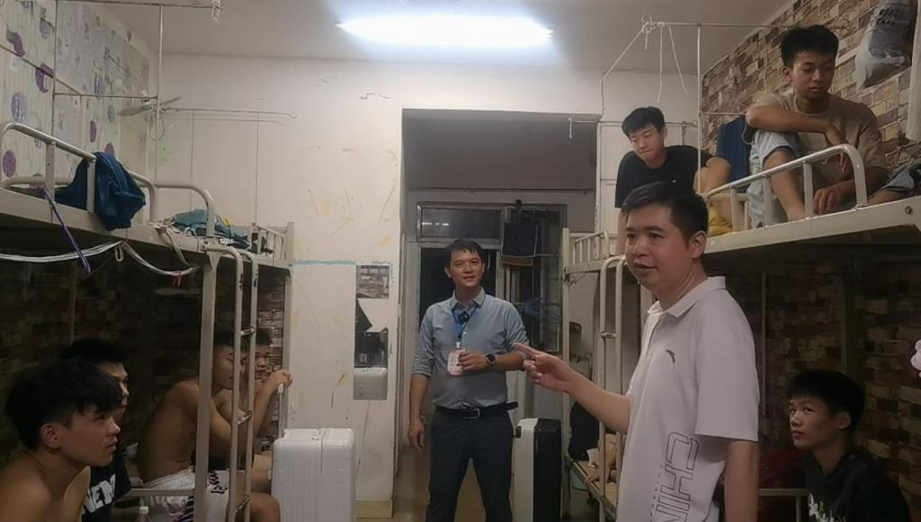 林月副院长、余晶副院长和辅导员们走访女生宿舍,生动形象地向学生们解释各专业特色、优势和体育知识的科普,鼓励学生在体育运动学院开启人生新征程。危副书记和黄副院长提醒同学们要注意防火、用电等方面安全问题,对学生提出要保持良好的宿舍卫生及生活习惯的要求。
