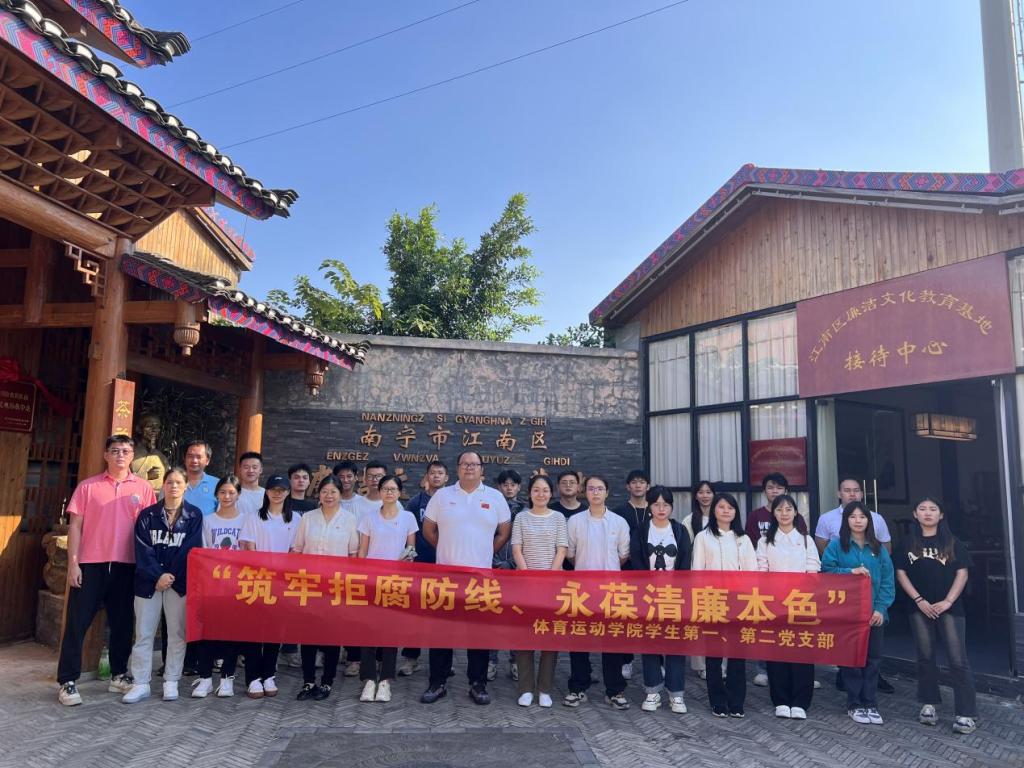为深入开展学习贯彻习近平新时代中国特色社会主义思想主题教育,切实增强支部党员廉洁自律意识,2023年10月16日下午,体育运动学院学生第一、第二党支部全体师生党员前往南宁江南区茶廉教育基地,开展“筑牢拒腐防线、永葆清廉本色”主题党日活动。
