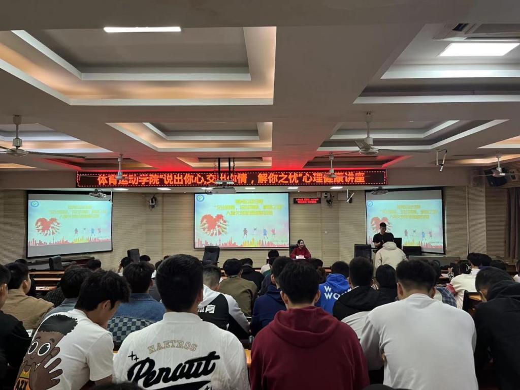 为认真贯彻党的二十大精神,贯彻落实《中国教育现代化2035》、《国务院关于实施健康中国行动的意见》,提升体育运动学院班团干的沟通协调能力,提高学生心理健康和人际交往素养。11月12日、19日,我院在公园路校区402教室和长岗校区瑞兴楼107教室举办心理健康讲座,讲座邀请南宁师范大学心理专任教师陈立老师授课,全体班干部及学生等400余人参加了此次讲座。