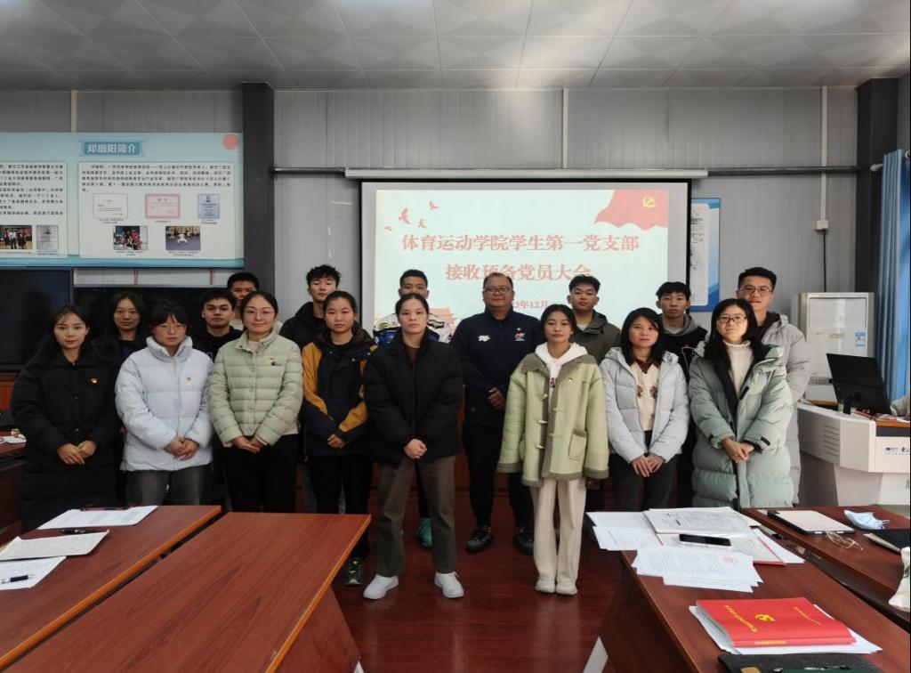 为加强基层党组织建设,切实提高党员发展质量,推进我院党员队伍发展,12月21日上午,体育运动学院学生第一党支部与学院6211会议室召开预备党员转正大会及预备党员接收大会。大会由支部书记李顺主持,支部全体党员、8名预备党员和6名拟发展预备党员参与会议。