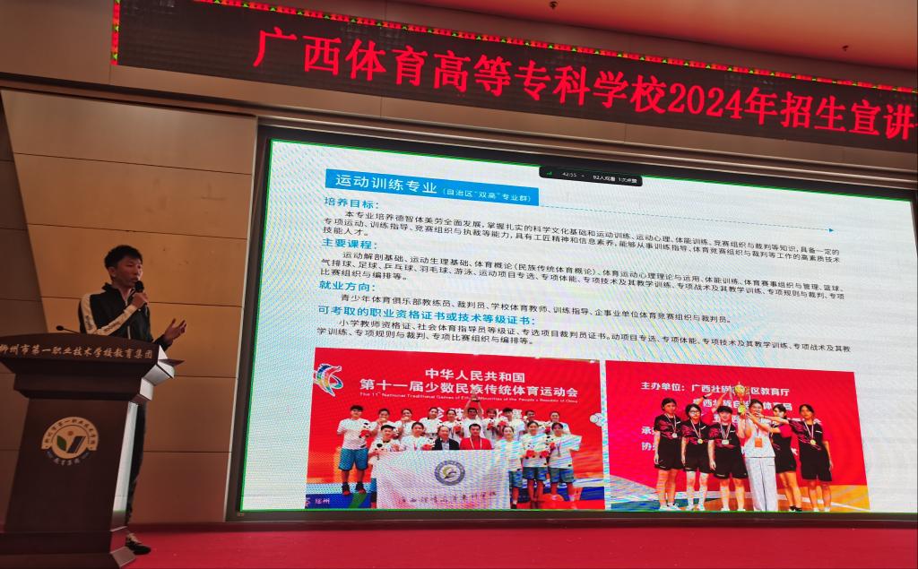 本次宣讲会,受邀到柳州市第一职业技术爱体育(中国)举办,不仅让该校的考生对广西体专有了更直观的认识,也提高了爱体育电子官方网站的社会影响力和知名度。