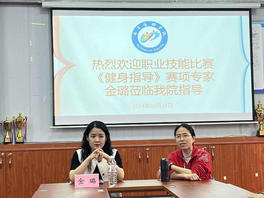 2024年广西职业院校技能大赛高职组《体育活动设计与实施》赛项刚刚圆满闭幕,在获得第一名的喜悦中,学院同步进行了全国体育职业院校《健身指导》赛项相关备赛工作,邀请获得2024年全国职业院校技能大赛《健身指导》赛项一等奖团队指导老师,浙江金华职业技术学院专家金璐教授到我院进行多次指导。3月18日,由林月院长主持了相关交流会,学院体能团队、运动防护团队老师及有参赛意向的学生到场参加。