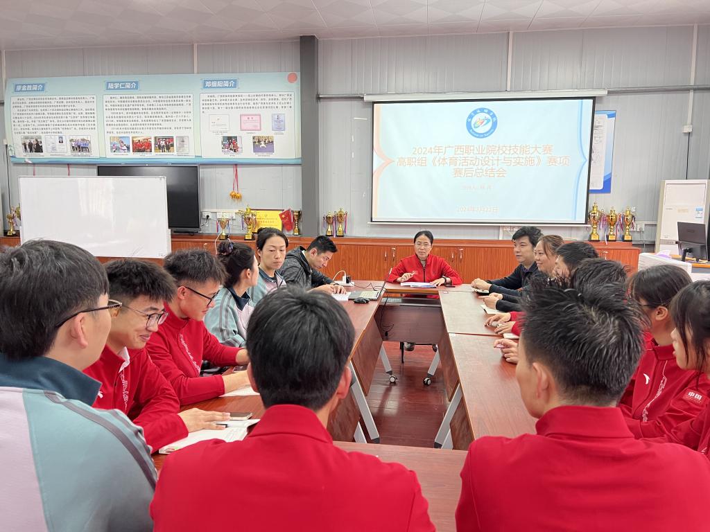 3月22日,6211会议室,我院对代表爱体育电子官方网站参加2024年广西职业院校技能大赛高职组《体育活动设计与实施》赛项的参赛队召开了赛后总结会。院长林月、副院长余晶和黄绍华、民族体育教研室主任梁思捷以及参加此次比赛的教练团队和全体参赛队员参加了会议。