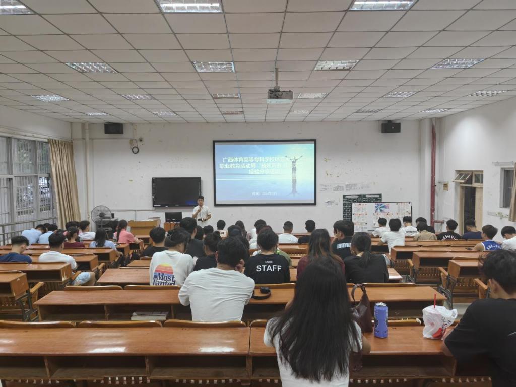 5月25日晚,体育运动学院在长岗校区瑞兴楼107教室组织开展“技炫青春 能创未来”经验分享活动,100余名学生到场观摩。目的是充分展示我院在深化现代职业教育体系建设改革成果,进一步树立体育工匠精神,激发热爱技能、学习技能、传承技能的使命感,助力全院形成劳动光荣、技能宝贵,创造伟大的时代风尚。