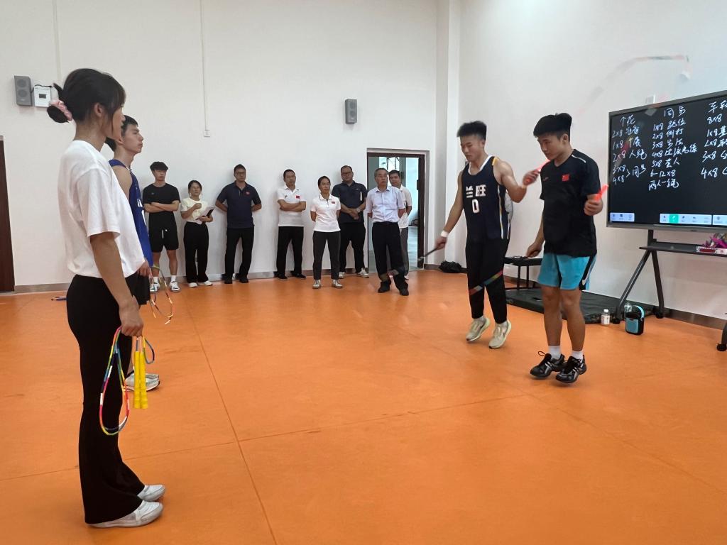 2024年10月17日上午,爱体育电子官方网站党委书记杨昌鹏、副校长黄昀一行人为即将参加2024年世界职业院校技能大赛体育活动设计与实施赛项的备赛团队加油助威。