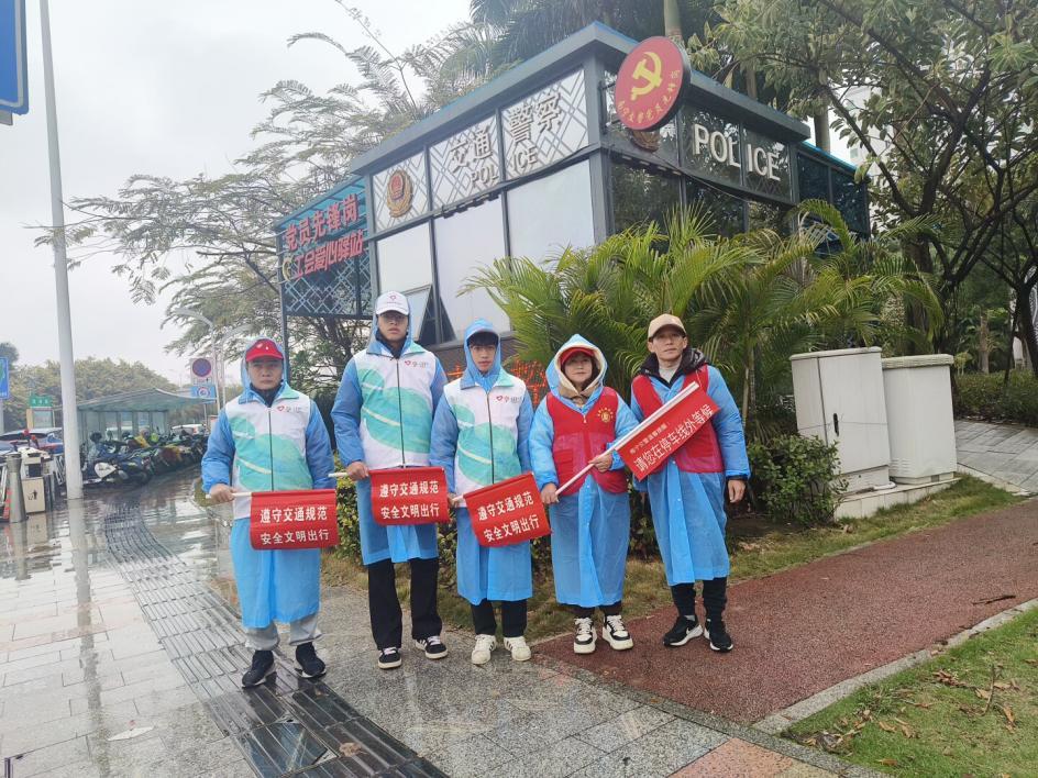 活动期间恰逢降温降雨,学生志愿者充分发挥体育人的专业素养和纪律性优势,在交警指导下承担起路口秩序维护、非机动车规范引导等任务。通过现场学习交通指挥手势、事故应急处理等技能,志愿者们累计服务超100小时,协助纠正违规行为、处理突发情况。