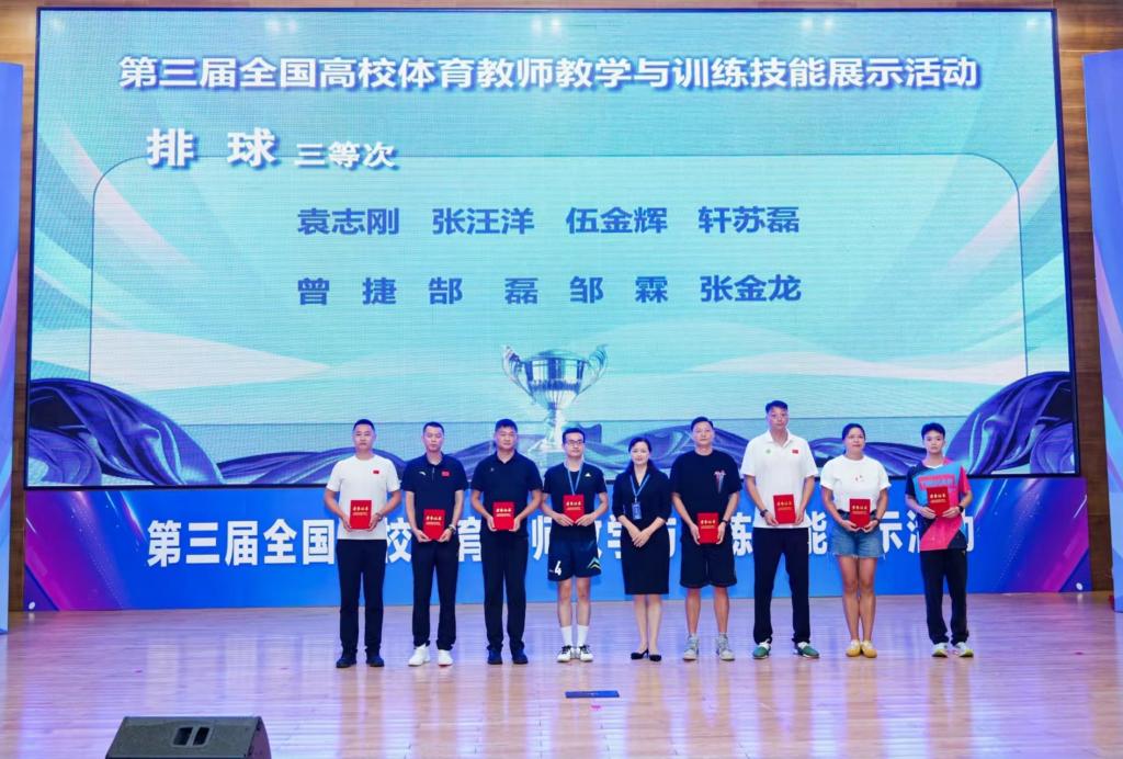 伍金辉老师(左六)荣获青年组排球项目三等奖