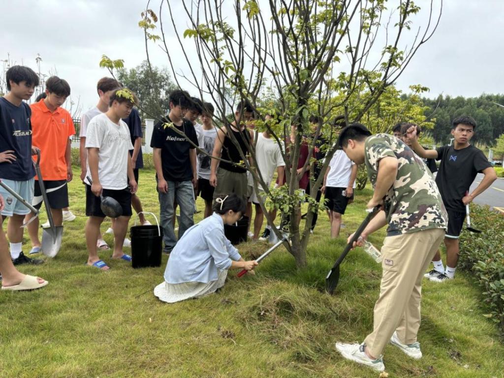 学生为果树施肥、浇水