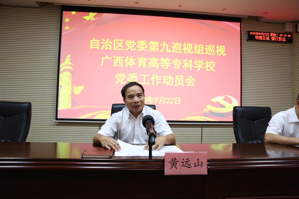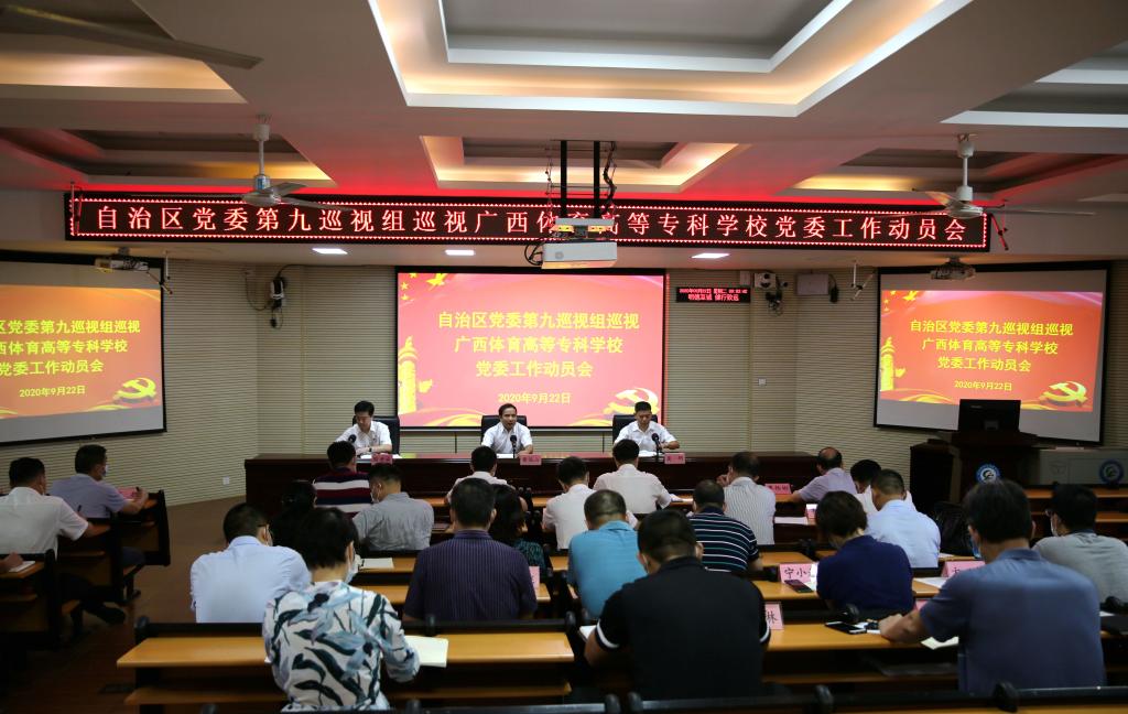 根据自治区党委关于巡视工作的统一部署,2020年9月22日上午,自治区党委第九巡视组巡视爱体育电子官方网站党委工作动员会召开。会上,自治区党委第九巡视组组长黄远山就即将开展的巡视工作作了讲话,体育高等专科爱体育(中国)党委书记周璋斌主持会议并作表态发言。