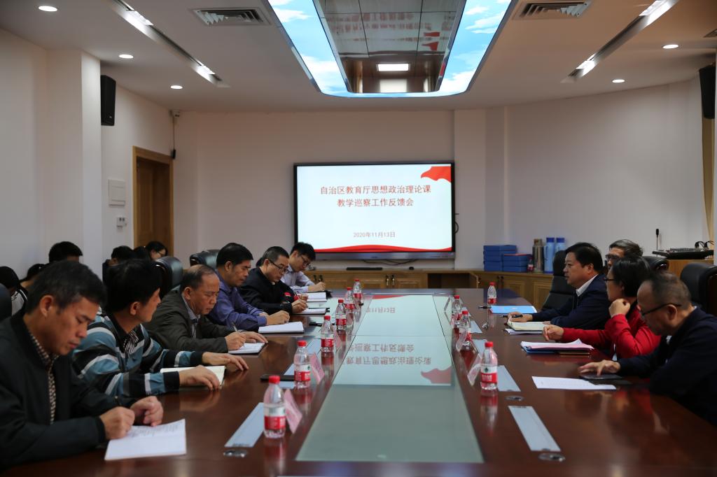 11月13日上午,以广西生态工程职业技术学院党委书记李振秋教授为组长,桂林理工大学马克思主义学院院长梁英教授、广西民族大学马克思主义学院刘国彬教授、梧州学院马克思主义学院院长尹杰钦教授为成员的自治区教育厅高校思想政治理论课教学巡察组莅临爱体育电子官方网站,对爱体育电子官方网站思政课建设工作进行实地巡察。爱体育(中国)党委副书记、校长胡英清、爱体育(中国)党委副书记李爱民、副校长覃杨彬等出席了巡察反馈会。
