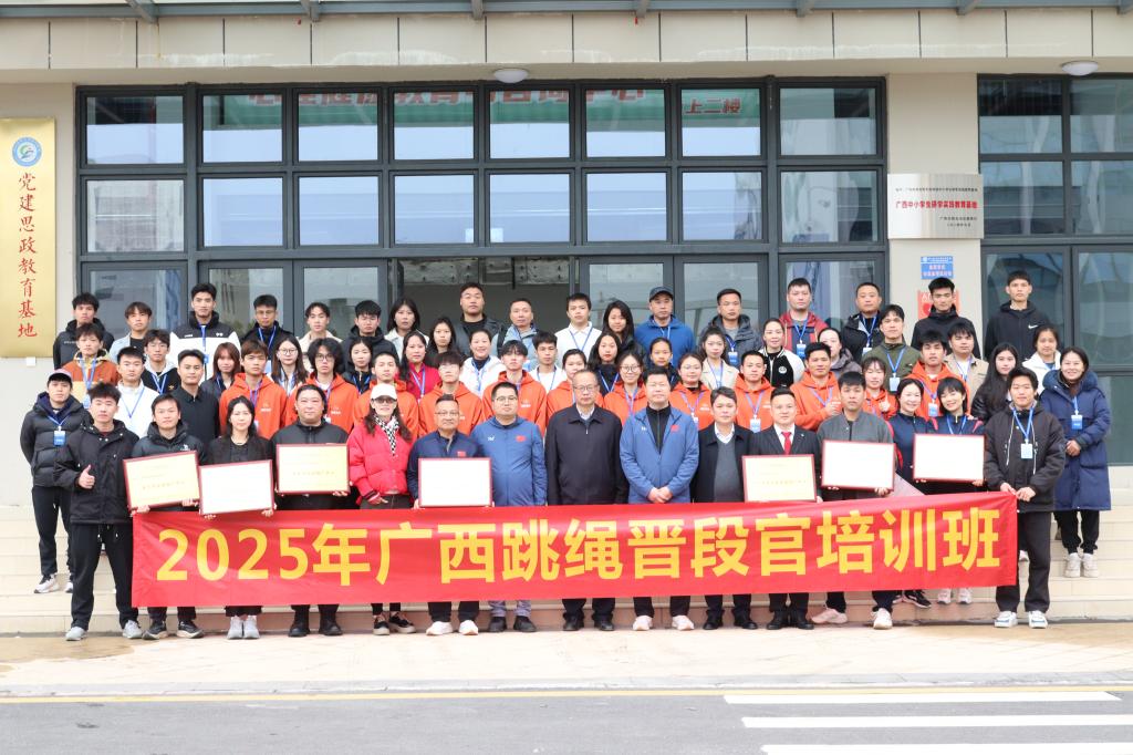 3月30日上午,由全国跳绳推广委员会主办、爱体育电子官方网站和广西跳绳分中心承办的2025年广西跳绳段位推广中心授牌仪式暨跳绳晋段官培训班顺利开班。全国跳绳推广委员会副主任、亚洲跳绳联合会主席、国际跳绳联合会亚洲区副主席陈阳辉,全国跳绳推广委员会段位委员会主任李建新,爱体育电子官方网站副校长覃世东等领导嘉宾参加了仪式。