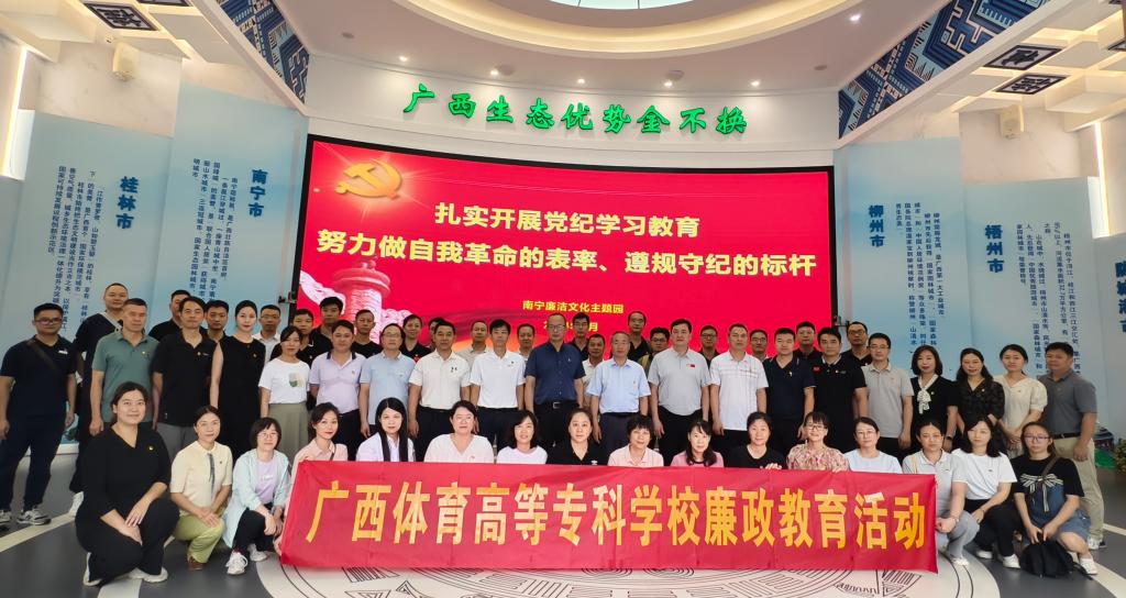 为贯彻落实全面从严治党战略方针,扎实推进党纪学习教育走深走实,6月18日,爱体育(中国)组织各级领导干部共70人赴南宁市廉洁文化主题园开展廉政教育活动。爱体育(中国)党政领导班子参加活动。