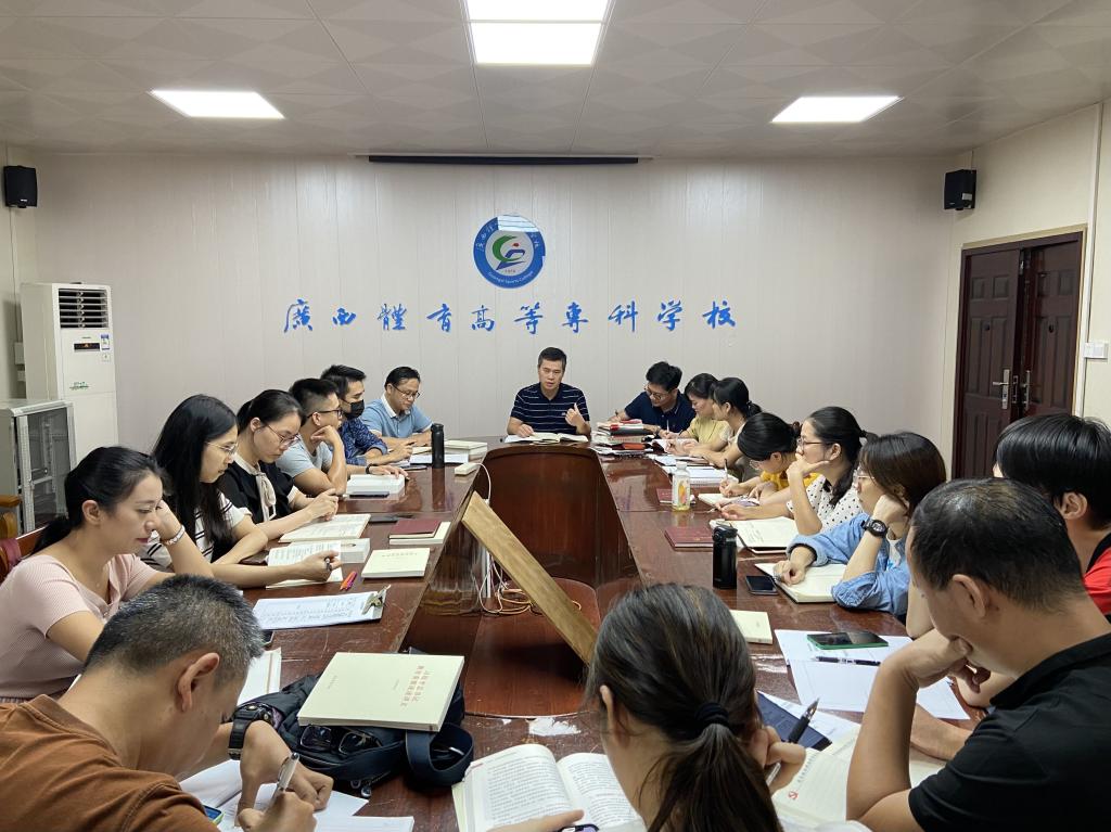 9月30日下午,思政部(公教部)全体教师在第二会议室召开政治学习例会。会议由思政部(公教部)主任刘义飞同志主持。会上,部门全体党员讨论成立了党小组,并选出了各小组委员。陈志诚、梁菲菲、黄燕玲、黄超老师分别领读了《习近平谈治国理政》第三卷。最后,部门副书记谢有长宣布了成立“概论课”教研室、“基础课”教研室、“形势政策与军事理论教研室”及人员分配事宜。