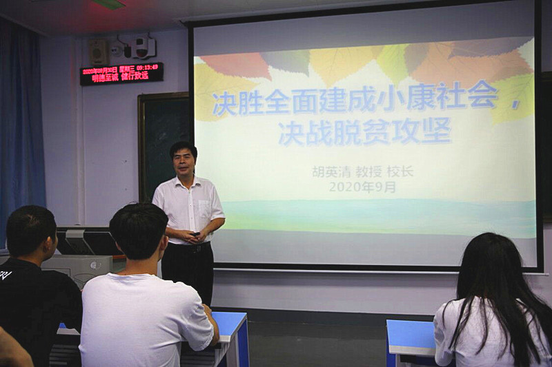 9月30日上午,胡英清校长走进运科院2019级康复治疗技术5班的课堂,为学生上了一堂题为《决胜全面建成小康社会,决战脱贫攻坚》的形势与政策课,讲课紧密结合了《习近平谈治国理政》第三卷第五个专题内容的学习。