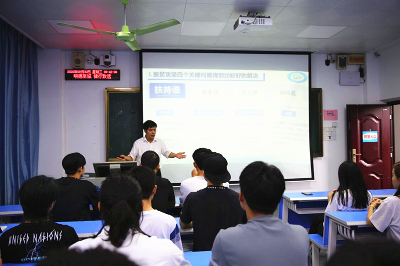 胡英清校长从脱贫攻坚进展符合预期、扶贫脱贫的中国方案和不获全胜决不收兵等三个方面,深刻阐述了党的十八大以来,以习近平同志为核心的党中央从全面建成小康社会要求出发,全面打响脱贫攻坚战,谱写了人类反贫困历史新篇章。胡校长的讲课结合学生的实际和爱体育电子官方网站在精准扶贫方面取得的积极成效,既有丰富的案例,又有详实的数据;既有理论的高度,又接地气。课堂氛围严肃活泼、台上台下互动频繁、精彩迭出。课后,学生们纷纷表示,胡校长的授课深入浅出,不仅使其感受到思想政治理论课的理论魅力,也感受到了自己身上肩负的使命和责任,期待聆听更多这样精彩的思政课。