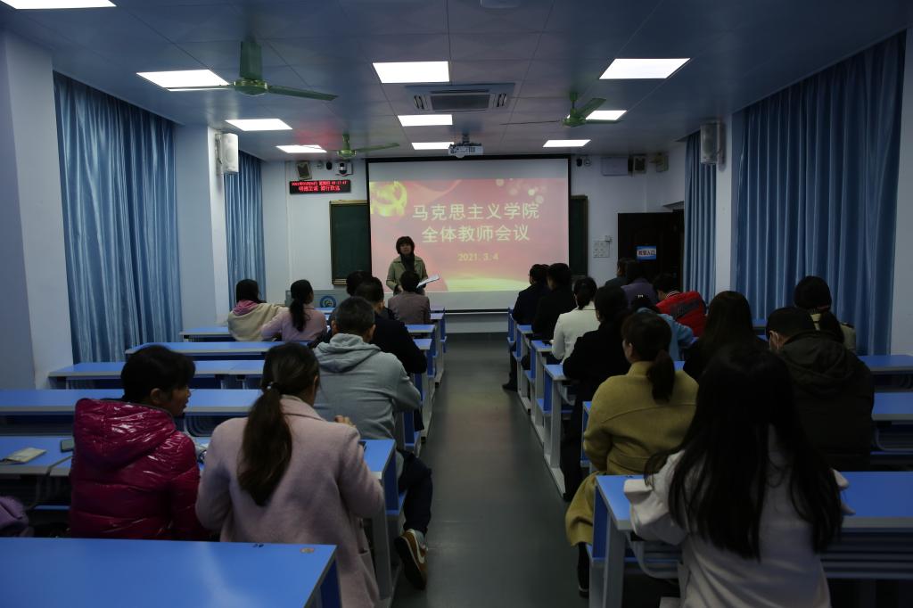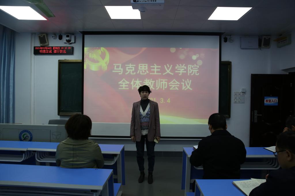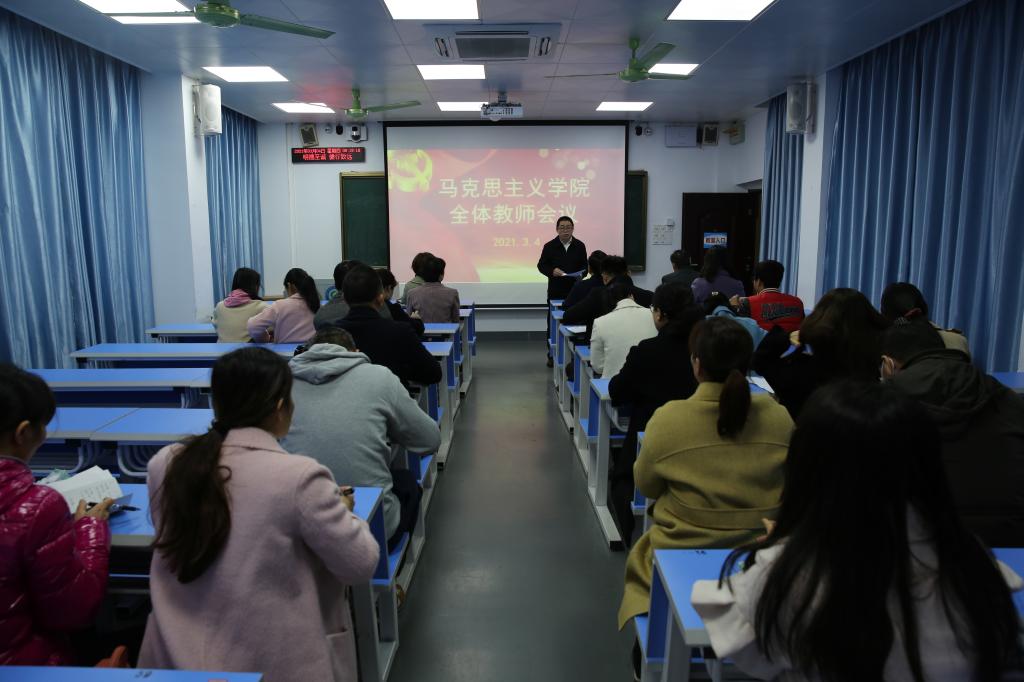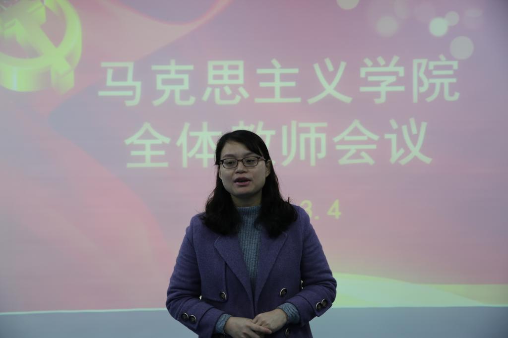 3月4日上午,马克思主义学院在综合楼101教室召开干部任免宣布大会。爱体育(中国)党委副书记李爱民、组织部部长黄昀、马克思主义学院党委书记黎竹娟、院长谢有长、副院长黄航及马院全体教师出席会议。会议由马克思主义学院院长谢有长同志主持。